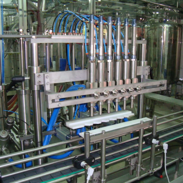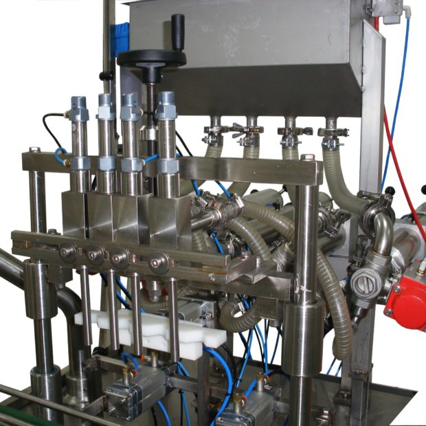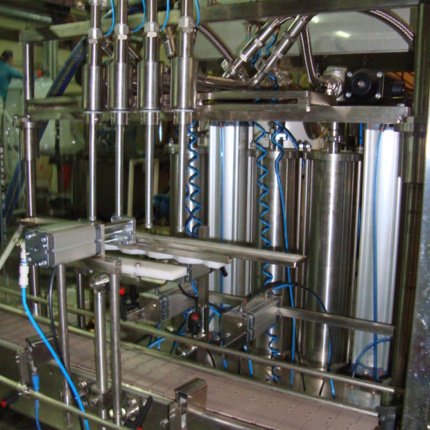 Totes les nostres omplidores lineals vénen previstes de sistema atrapa-colls garantint el correcte centrat dels colls d’envàs i broquets del tipus anti-degoteig. Per a la manipulació de productes escumosos integrem sistema de broquets progressives on les broquets van pujant conforme el producte. Aquest sistema incorpora a més safata de possible recollida de producte sobrant.
